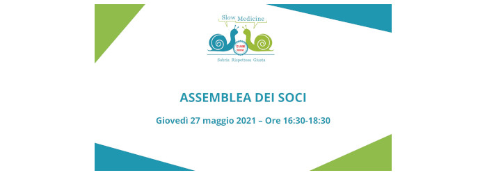 Si è svolta giovedì 27 maggio 2021 a partire dalle 16,30 (in seconda convocazione) l’Assemblea dei soci di Slow Medicine per approvare l’adeguamento dello Statuto in vista dell’iscrizione di Slow Medicine al Registro Nazionale Unico del Terzo Settore (RUNTS).