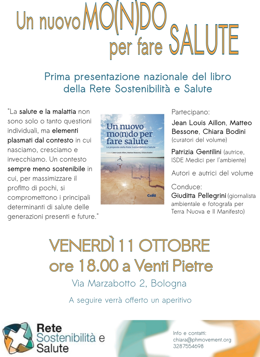 Dopo circa un anno di gestazione, è uscito in libreria il libro della Rete Sostenibilità e Salute: “Un nuovo mo(n)do per fare salute”. Come suggerisce il titolo, si tratta di riflessioni e spunti, teorici e pratici, per ripensare la salute e la cura all’interno di un più ampio ripensamento dell’attuale sistema socio-economico e culturale, insostenibile e patogeno.